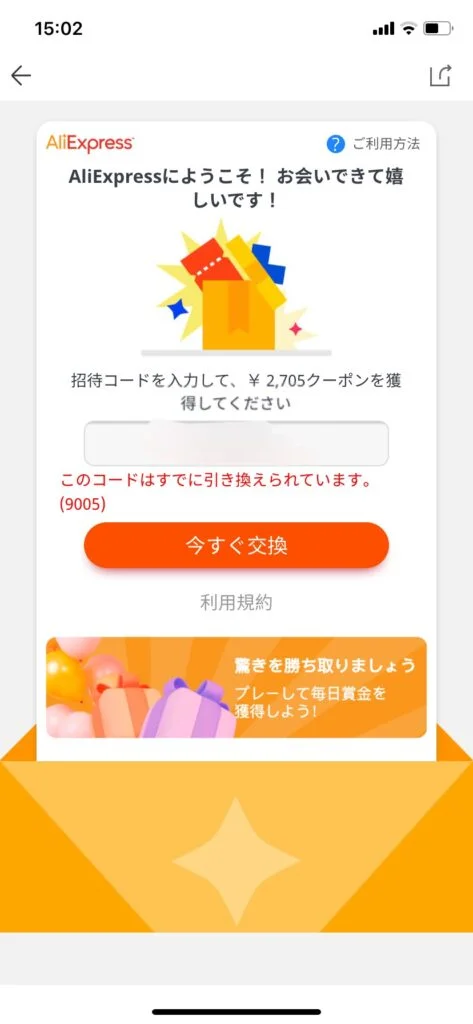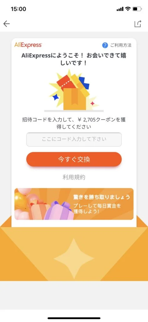 AliExpressは招待コードを入力すると割引クーポンがもらえるので初めて利用する場合は使った方が良いです!